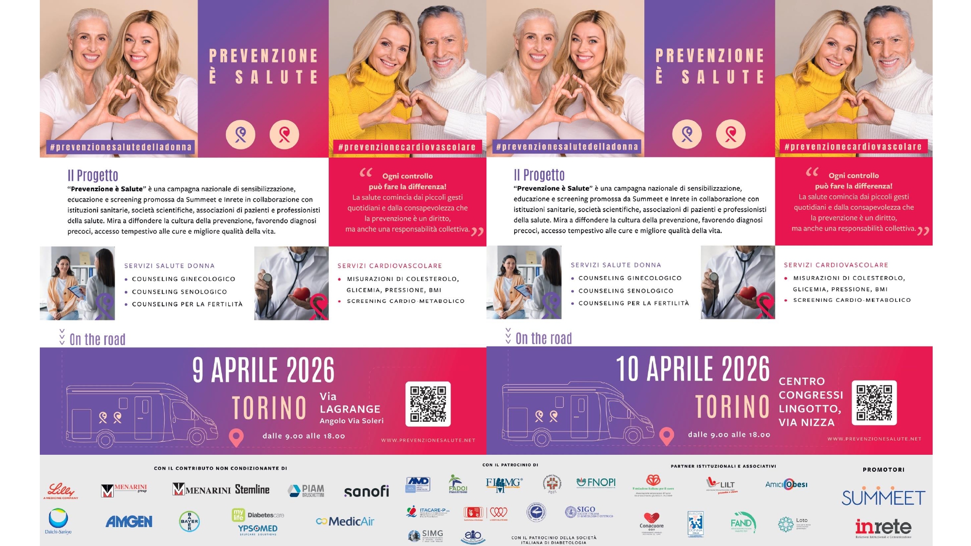 L'appuntamento nella città piemontese è fissato per il 9 aprile in Via Lagrange e per il 10 aprile presso il Centro Congressi Lingotto, in entrambi i casi dalle 9 alle 18, con visite in ambito cardiometabolico e di salute femminile, screening e iniziative di educazione sanitaria.